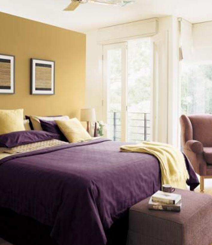 Vàng và tím sang trọng cho phòng ngủ