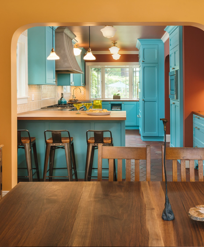Vàng thư và xanh Navy vui tươi cho nhà bếp